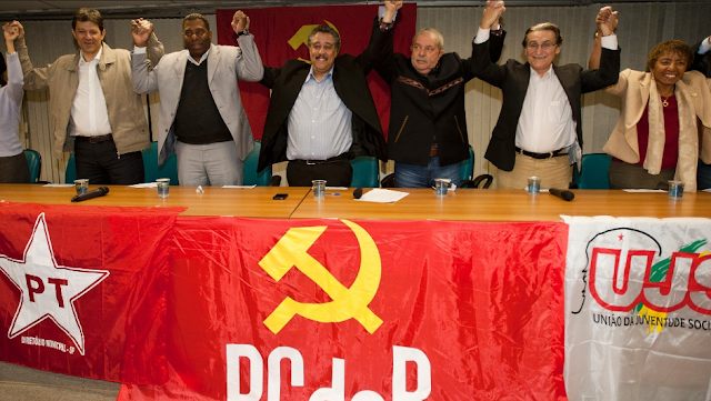 PCB, PCdoB, PT e a maioria dos inúteis 35 partidos, atolados no lodo da imundície republicana brasileira... Adoram importar fórmulas prontas dos outros, mesmo que estas não funcionem mais por lá. Botem seus neurônios para trabalharem cambada de incompetentes abduzidos. e criem um partido que tenha raízes nacionais. Parem de venerar as ideologias, símbolos, heróis dos outros seus dementes. Não somos nenhuma União Soviética, China Comunista, tampouco uma Cuba. Vão pregar suas sandices ideológicas alienígenas clonadas em outras plagas.