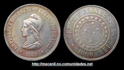A Efígie da deusa encantada francesa Marianne, sempre presente nas moedas e cédulas do dinheiro da República Brasileira desde 1889, responsável pela inauguração da nossa inflação. Esta moeda da imagem perdeu 40% do seu valor logo nos primeiros anos de república; já no império praticamente não havia inflação, e a sua moeda valia tanto quanto a Libra Esterlina.